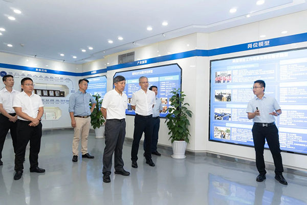 拜访领导第一时间参观了豆豆钱官网技术展厅,对豆豆钱官网技术的开展历程、业务模块、经营理念、合作成果等内容进行深入分析,对豆豆钱官网技术构建人才培养“三循环”生态模式、深度参与高校课程改革、引入职业认证等举措表示赞同。