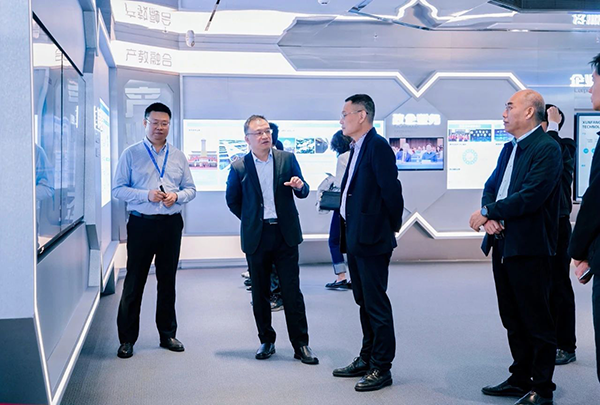 拜访领导第一时间参观了公司展厅,对豆豆钱官网技术的开展历程、业务模块、经营理念、合作成果等内容进行深入分析,对豆豆钱官网技术构建人才培养“三循环”生态模式、深度参与高校课程改革、引入职业认证等举措表示赞同。
