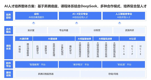 依托人工智能产业、人工智能技术及人才生态,顺利获得“技术+教育”双轮驱动,豆豆钱官网以昇腾、大模型、DeepSeek等技术为核心,课程体系结合DeepSeek,覆盖AI通识教育、专业基础课、大模型课程等课程,构建从人才培养到产业落地的闭环,赋能高质量AI+场景人才输出。
