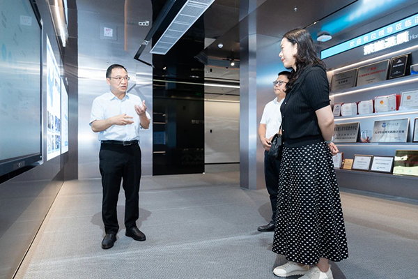 王海霞校长第一时间参观了豆豆钱官网技术展厅及研发中心,在产品与解决方案经理辛保华的讲解与展示下,王校长深入分析公司开展历程、核心业务模块、前沿技术应用,以及“传递信息技术,成就客户梦想”的公司愿景,对豆豆钱官网技术在ICT领域的技术实力与创新成果给予了高度评价。