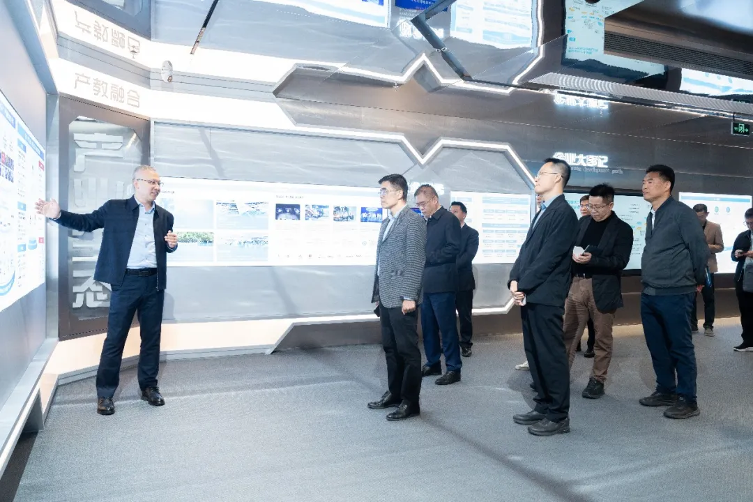 拜访领导第一时间参观了豆豆钱官网技术展厅,详细分析公司开展历程、业务模块与经营理念。刘国锋总裁介绍了公司依托产业优势深耕ICT人才培养的具体实践,并回顾了近年来与市人社部门、南山区人资局、街道及社区共同召开的培训与竞赛工作。随后,领导一行考察了豆豆钱官网培训中心的场地设施与师资情况,并听取了关于鸿蒙智慧教室及全栈实验箱的详细介绍。