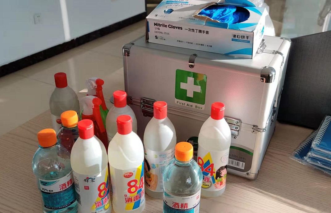 提前实行上班期间疫情防控应对方案和复工前疫情防控工作,办公室配置了应急药箱、酒精、84消毒液、一次性手套等消杀用品。