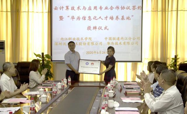 为进一步贯彻落实《国务院关于印发国家职业教育改革实施方案的通知》,抓住成渝地区双城经济圈建设的机遇,落实内江市“四新一大产业开展,深化校企合作、产教融合,加强专业建设,为国家培养高素质技术技能人才。624日上午,我司与内江职业技术学院、中国联通内江分公司在内江职业技术学院隆重举行了云计算技术与应用专业合作协议签约暨“华为信息化人才培养基地”授牌仪式。