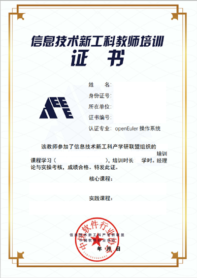 信息技术新工科产学研联盟证书