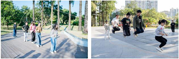 寻宝队先找守护者抽签得出跳绳次数后,然后两名成员对立舞绳,其余成员一起完成相应次数陆续在跳绳,则闯关成功。